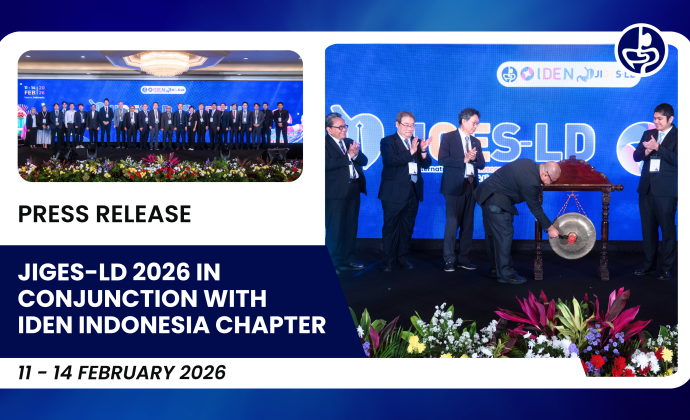 Pendaftaran JIGES–LD 2026 in conjunction with IDEN Indonesia Chapter telah dibuka. Untuk pertama kalinya, JIGES berkolaborasi dengan IDEN Korea (International Digestive Endoscopy Network). Acara tahunan ini akan kembali digelar di Shangri-La Hotel Jakarta pada 11–14 Februari 2026, menghadirkan rangkaian sesi ilmiah, workshop, dan video presentation, poster exhibition, dan network yang dirancang khusus